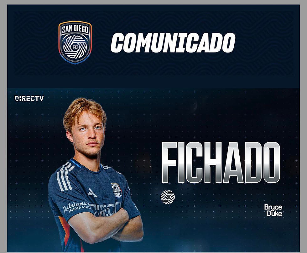 SAN DIEGO (Lunes, 9 de febrero de 2026) – San Diego FC (SDFC) anunció hoy que el Club ha fichado al mediocampista Bryce Duke con contrato garantizado hasta junio de 2027, con opciones del Club para la temporada 2027-28 y la temporada 2028-29